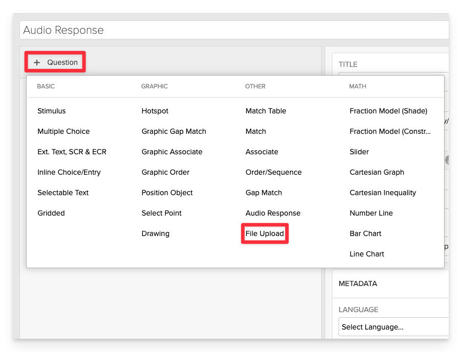 The File Upload item type allows students to submit a file as their response. This flexible format supports a wide range of student work, including written assignments, images, recordings, presentations, and multimedia projects. It’s especially useful when the response format goes beyond text; supporting creativity, extended work products, or alternative methods of demonstrating understanding. File Upload items are manually scored by teachers.