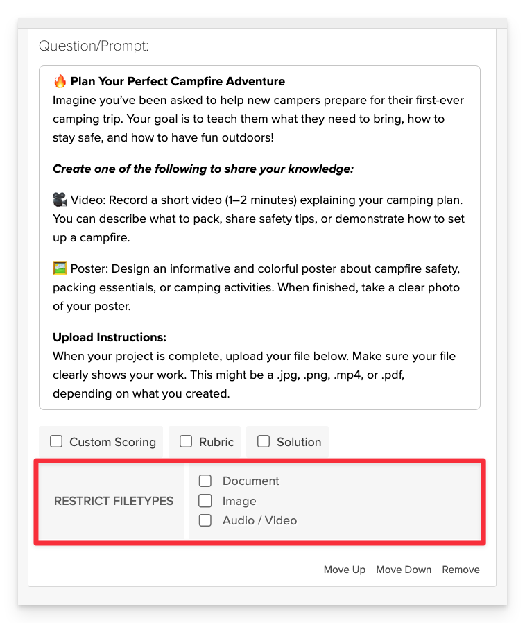 This item type expands how students can demonstrate learning, making it possible for them to share artifacts that reflect deeper thinking, problem-solving, or creative expression in their own formats.
