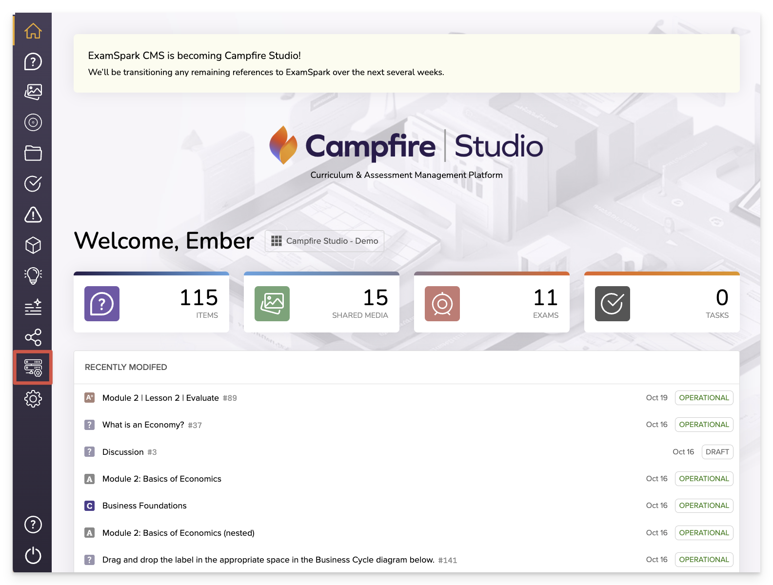 From the dashboard, click the Operations icon in the left navigation menu.