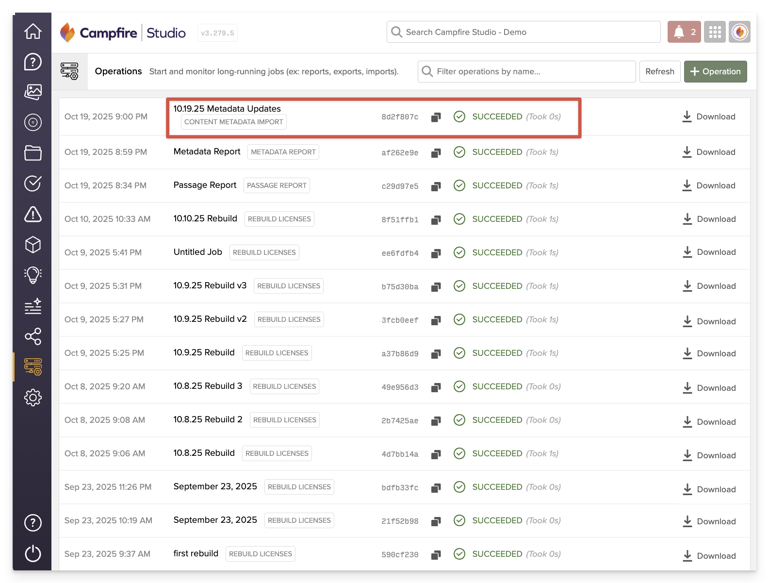 Before importing, we recommend downloading an existing metadata report from the Operations panel. Use this report as your template—make your changes directly in the file, then re-upload it to apply updates. This helps ensure consistent formatting and valid IDs for every item.